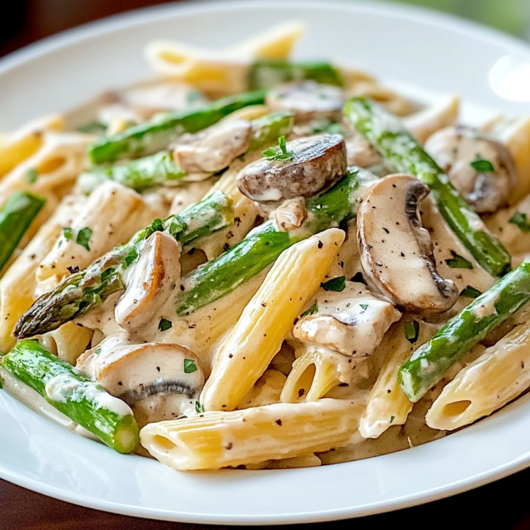 Amazing Creamy Mushroom and Asparagus Chicken Penne Delight