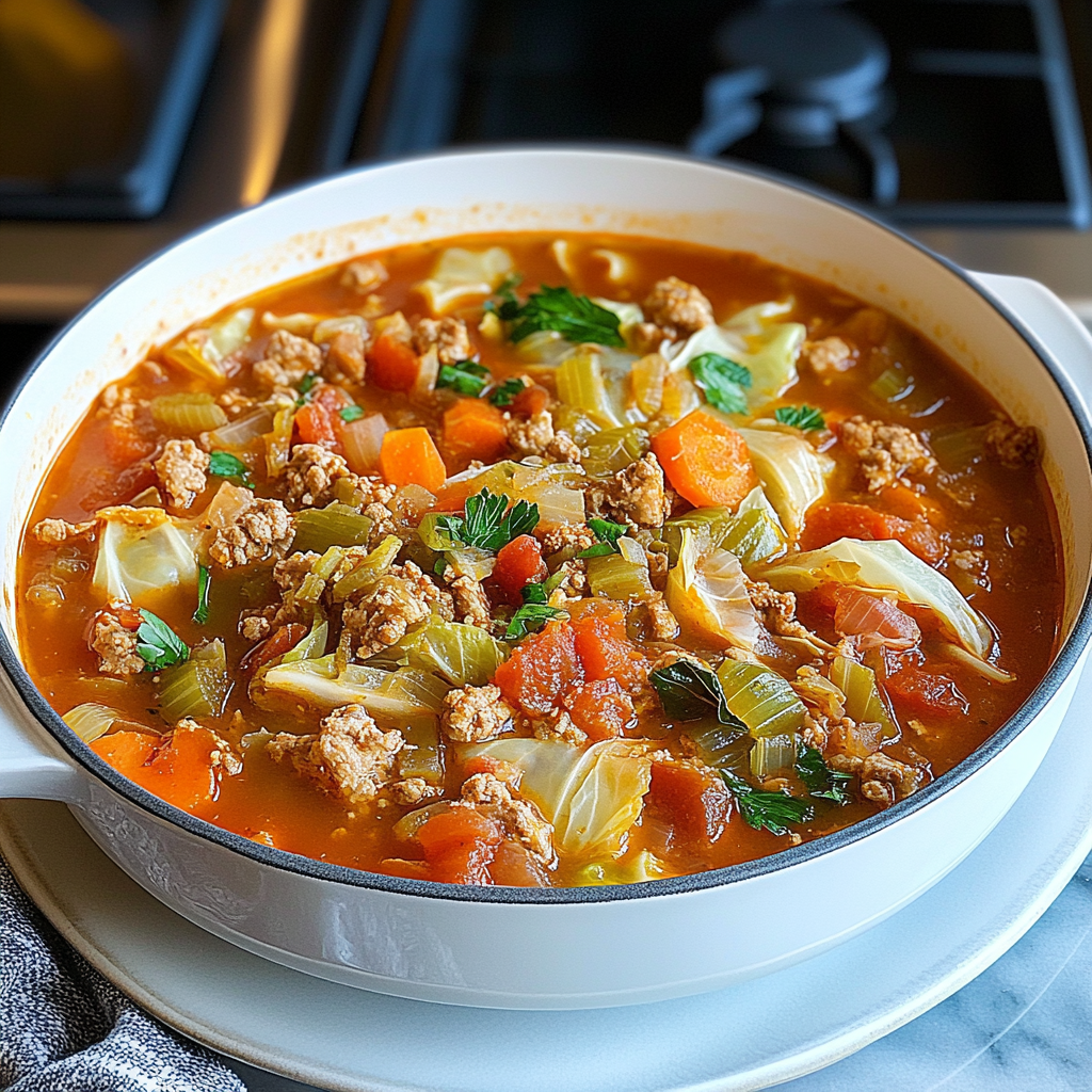 Warm up your chilly evenings with this comforting Hearty Cabbage Roll Soup, filled with tender cabbage, zesty ground meat, and rich tomatoes—a cozy hug in a bowl.