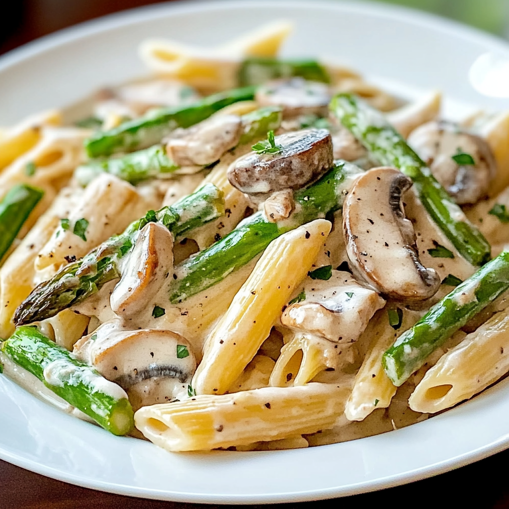 - What is Creamy Mushroom and Asparagus Chicken Penne?