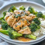 Enjoy a quick, nutritious meal with tender chicken and vibrant broccoli, all coated in a savory sauce—perfect for weeknight dinners or impressing guests.