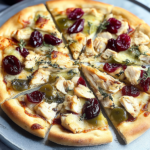 Irresistible Chicken and Cranberry Pizza is a delightful fusion of tender chicken, sweet cranberries, and melted cheese atop a crispy crust. Perfect for gatherings or cozy nights in.