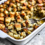 Start by sautéing onions and celery in butter until soft. Next, toast your bread cubes for added crunch. Combine everything in a bowl, adding broth gradually to achieve the perfect moist texture. Bake until golden brown and you’ll have stuffing perfection.