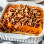 Experience the comforting flavors of creamy sweet potatoes topped with a crunchy maple pecan layer—perfect for any gathering or cozy night in.