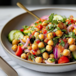 It was a sunny day at the park when I first served this refreshing chickpea salad at a picnic. My friends couldn’t get enough of it, claiming it was the star of the spread!