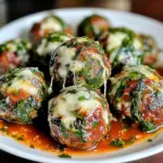 Spinach Garlic Meatballs Mozzarella are delicious meatballs made with ground meat, fresh spinach, and aromatic garlic. These meatballs are often mixed with breadcrumbs and seasoned to perfection, then topped with melted mozzarella cheese. This dish combines savory flavors that appeal to everyone, making it a great option for family dinners or meal prep. They can be served with pasta, in a sub, or on their own as a tasty appetizer. The addition of spinach not only enhances the flavor but also adds a nutritious boost.