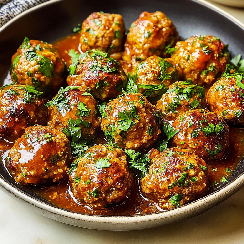 Indulge in these juicy turkey meatballs, perfectly seasoned and easy to prepare for any occasion. A delightful dish that guarantees satisfaction with every bite!